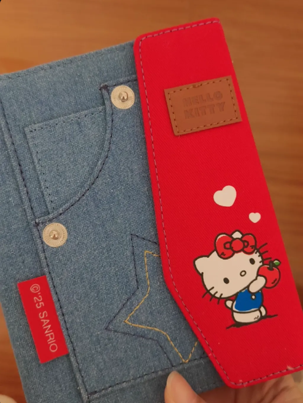 This Pashari passport holder features an adorable Hello Kitty theme with a bright red and blue color scheme. Crafted from durable denim & cotton fabric, it protects your passport and keeps cards, tickets, cash, and travel essentials organized in a compact, stylish design. Perfect for daily use and travel, it adds a fun, fashionable touch to your travel essentials.